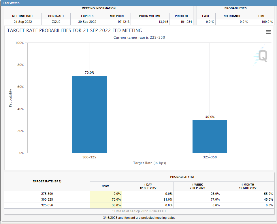 There is a reasonable shot at a 1% rise next week as this morning (9/14) the odds of a 100 basis point (1%) increase has risen to 30%.