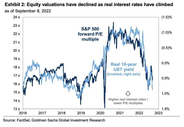 Equity valuations fall when real interest rates rise.