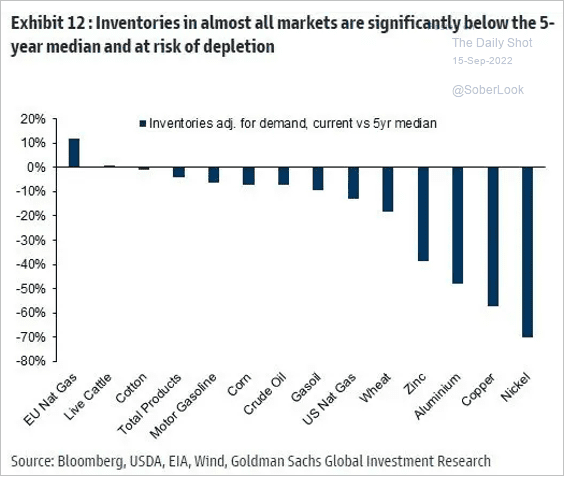 Inventories of many commodities are below average. Don't expect inflation relief from falling commodity prices.
