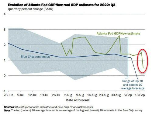 Coincidentally, the Atlanta Fed's GDPNow third quarter forecast plunged to just +0.5% today (9/15).