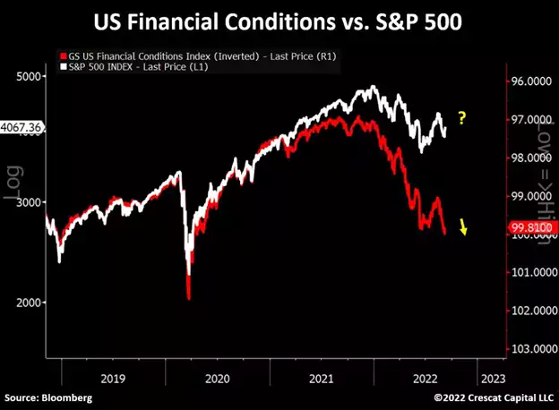 Goldman Sach's US Financial Conditions Index suggests stocks will continue to head south.