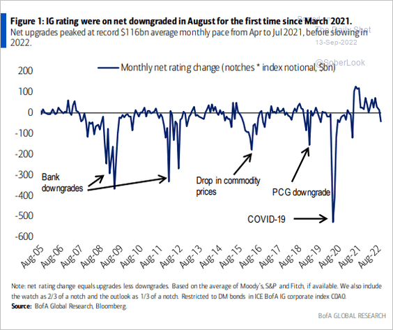 Rating agencies (Moody's, S&P, etc.) are now issuing more downgrades than upgrades for corporate bonds.