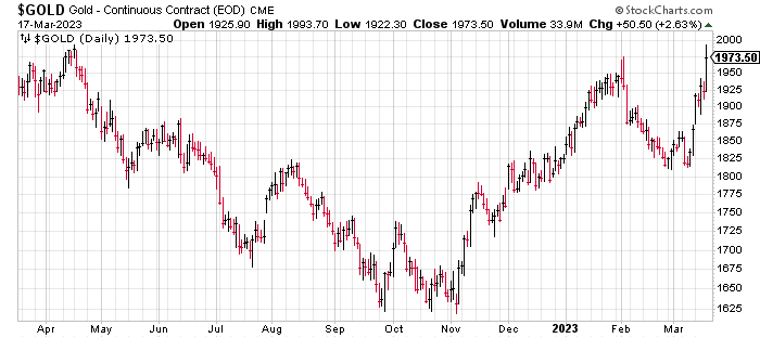 While bank stocks collapsed, gold soared close to its 52-week high.