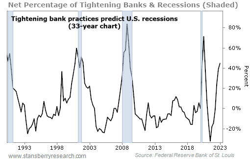 The Fed may be getting less aggressive, but banks are becoming more tight-fisted as this chart shows.