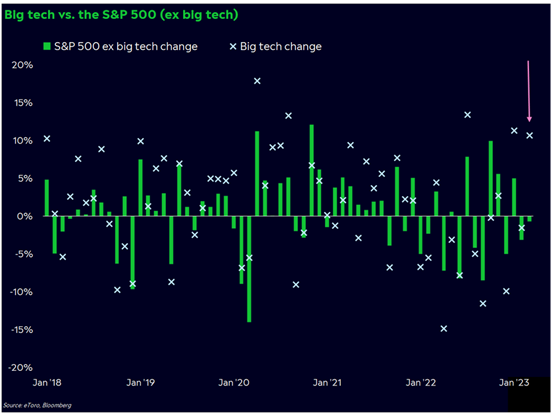 So you don't get too excited, it looks like big-cap tech stocks are propelling the market higher, and without their performance, the S&P 500 would be down a bit.