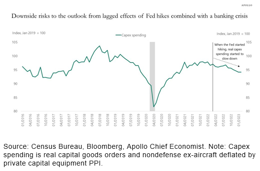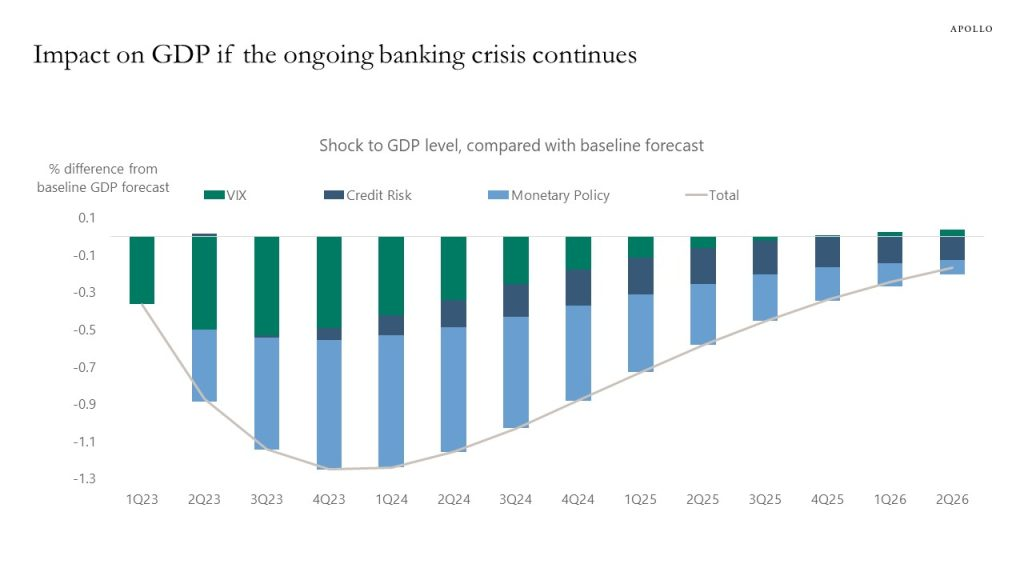 The banking crisis will have a depressing effect on the economy possibly knocking a percent off GDP growth in upcoming quarters.