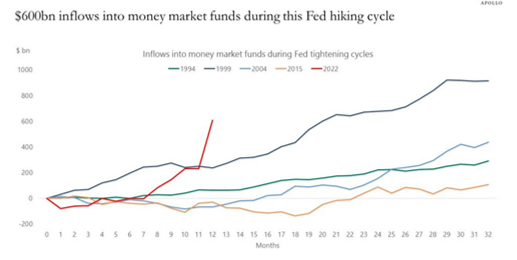 Here's one impact of those rate hikes - a dramatic increase in flows into money market funds and out of the embattled banks.