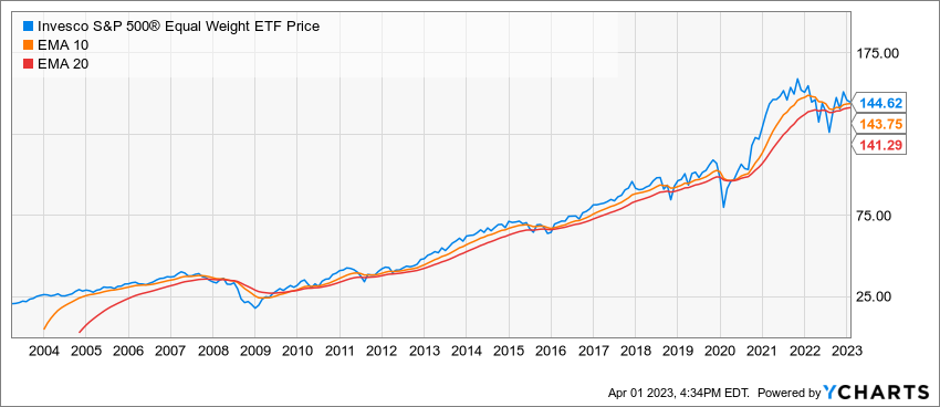 The equal-weighted S&P 500 has a similar, favorable pattern: