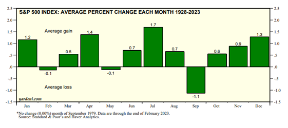 Another reason to be optimistic - April tends to be one of the strongest months of the year. Take a look at this chart of almost 100 years of market data.