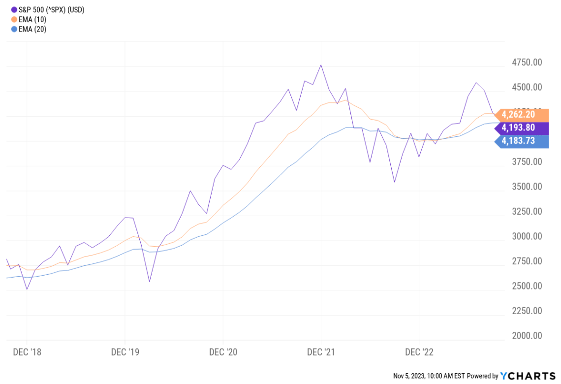 The weekly moving averages also paint a more upbeat picture for the S&P 500.