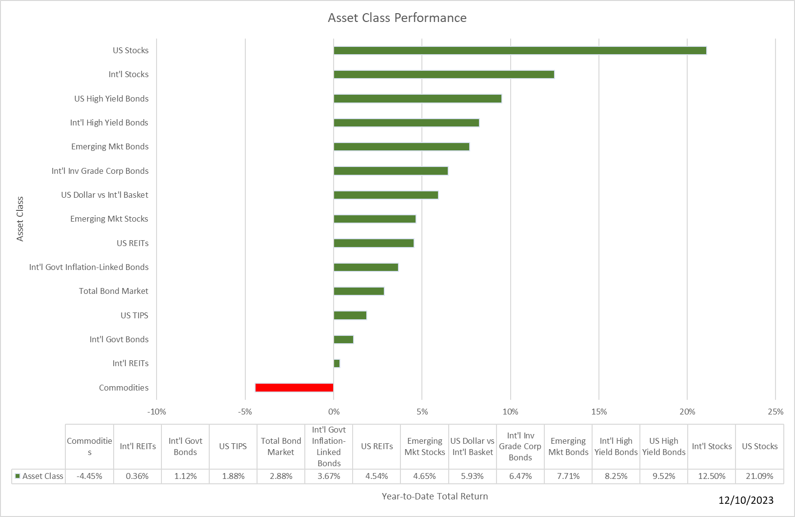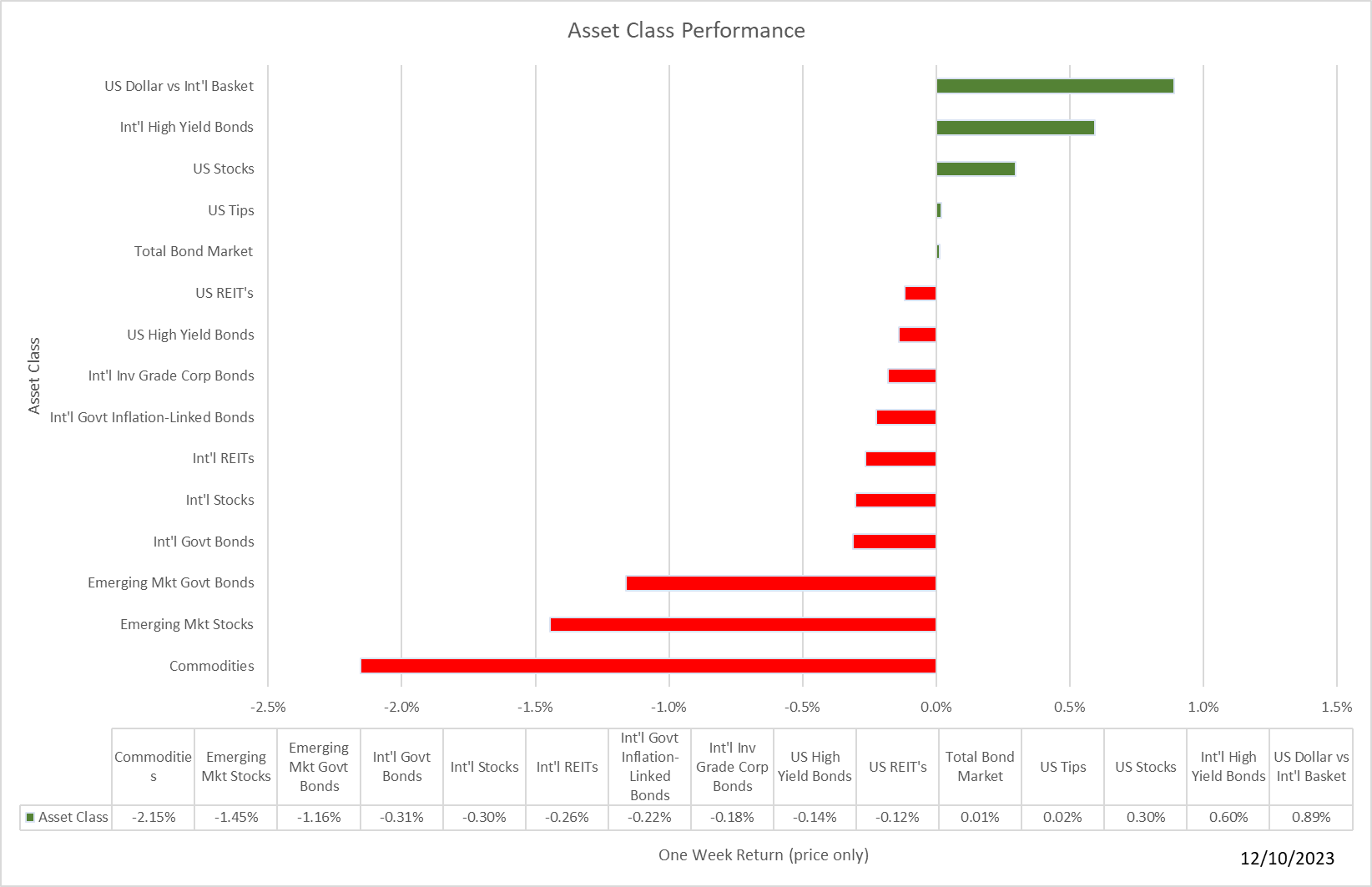 U.S. stocks inched higher this week. However, almost everything else retreated as you can see here: