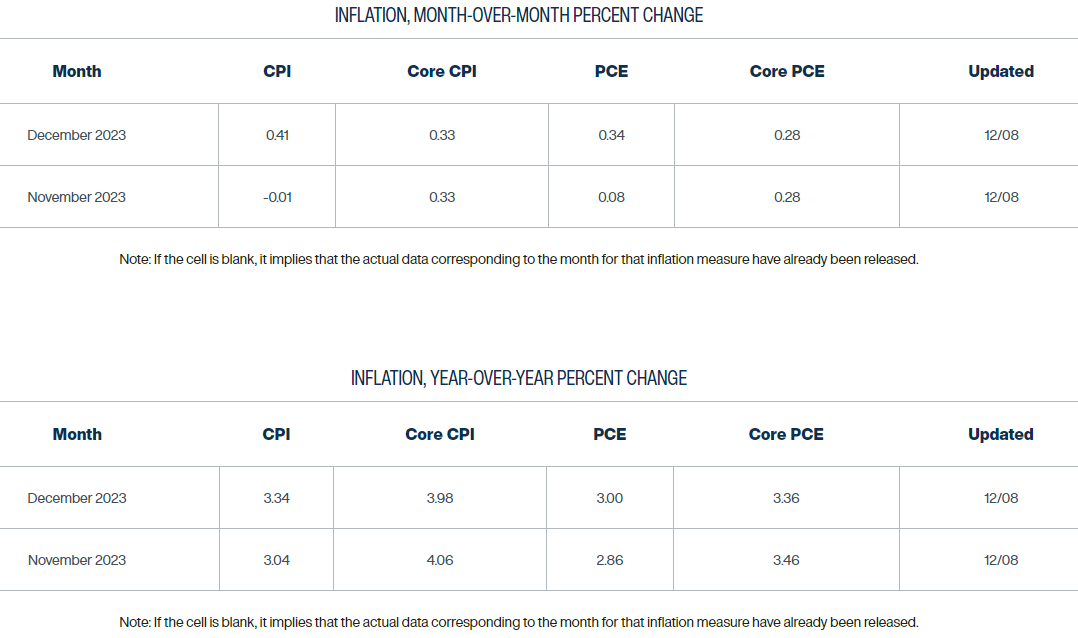 The Cleveland Fed's inflation "nowcast" shows similar trends. Note: Headline CPI is expected to fall in November thanks to falling energy prices. However core CPI remains close to 4% and like the graph above remains stuck in a range well above the Fed's 2% target.