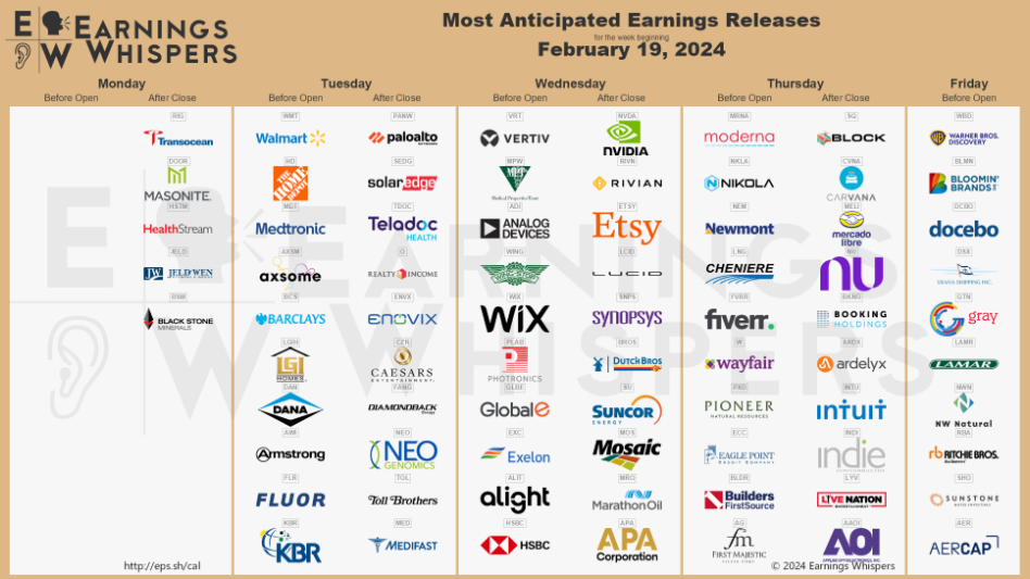Here are the expected reports for this week. Perhaps the most watched of the week will be NVIDIA, which could potentially have a significant market impact (good or bad). Also of interest will be the retailers Home Depot and Walmart.