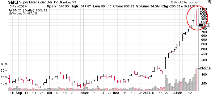 Super Micro Computer has become a poster child of the AI revolution. Its shares have soared from 280 at the start of this year, reaching an interim high of 1,078 early Friday, a gain of 285% in just six weeks. However, after reaching incredible heights, SMCI finished Friday down, 25% leaving its year-to-date return a still incredible 185%.