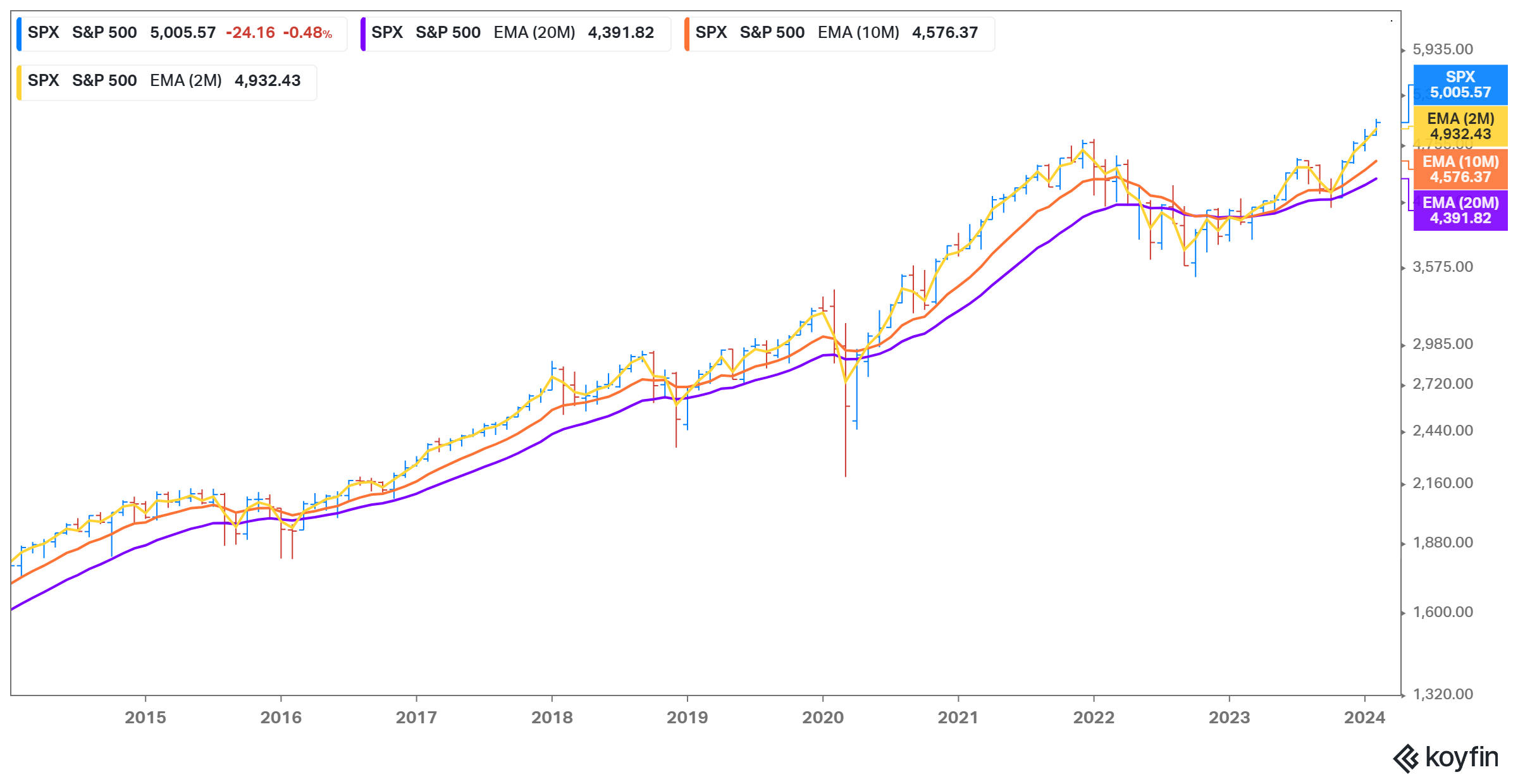 Despite the pullback, the S&P 500 remains comfortably above its long-term moving averages.