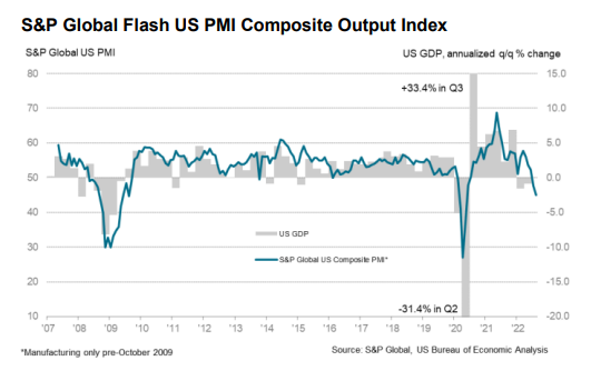 More companies are reporting disappointing results and forecasting a more difficult business environment. The S&P Global US PMI is continuing to erode consistent with a weakening economy.