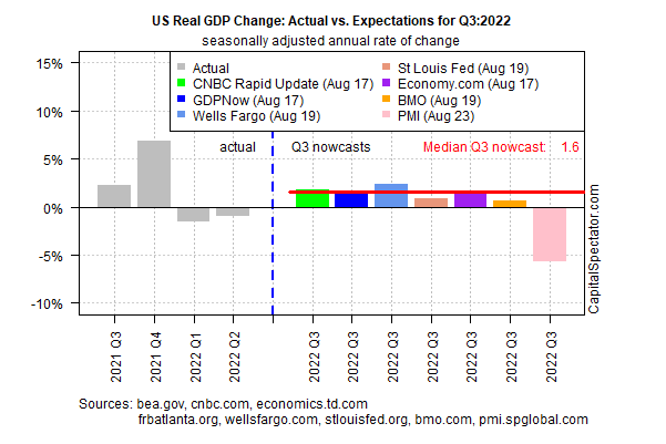 GDP growth was negative in both the first and second quarters, the classic definition of recession. While a rebound is likely in the third quarter, as shown in this recent survey of GDP "nowcasts", it may be short-lived.