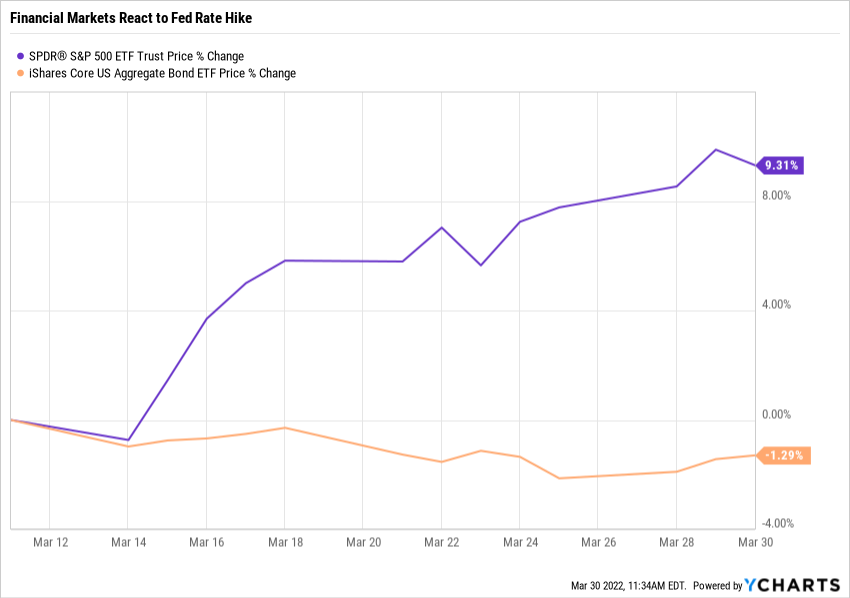 The other impact of the Fed's rate hike is the signal it sends to the financial markets that it is (finally) taking steps to address inflation. The stock market's reaction, so far, has been positive while the bond market remains underwater. (This, by the way, is a fairly typical reaction to the initial steps of an interest rate-raising cycle. If this continues, as it likely will, rising rates will eventually put a hurt on stocks.)