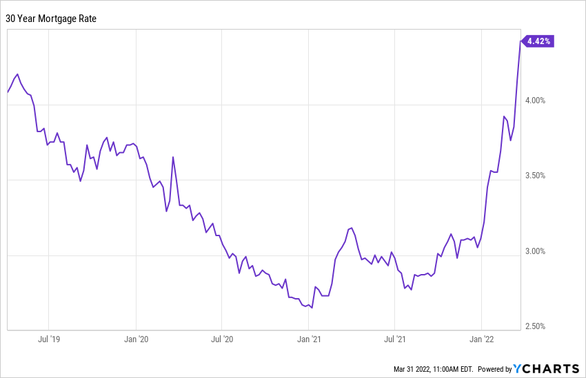 If you are a borrower, it's going to cost more for a mortgage or car loan. Here's a chart of the 30-year mortgage rate which is now back to where it was at the start of 2019 and 67% higher than the lows reached at the end of 2020. One has to imagine rates will continue to advance in the coming months.