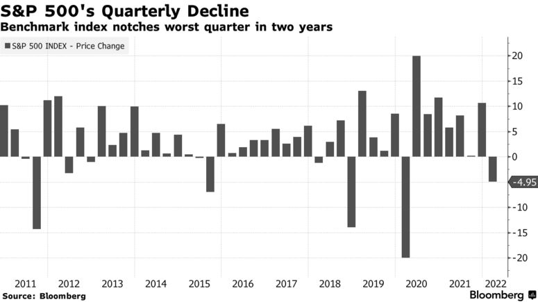 It was a tough quarter for investors in the stock and bond markets. Inflation, rising interest rates, disappointing earnings reports, high valuations, and war in Europe created a perfect storm for stocks pushing the S&P 500 down more than 12% by mid-March. Then, a sharp rally fueled by favorable war news and (perhaps) the Fed's first interest rate hike in five years allowed stocks to recover some of their losses, finishing down 5%. Still, it was the first quarterly decline in two years.