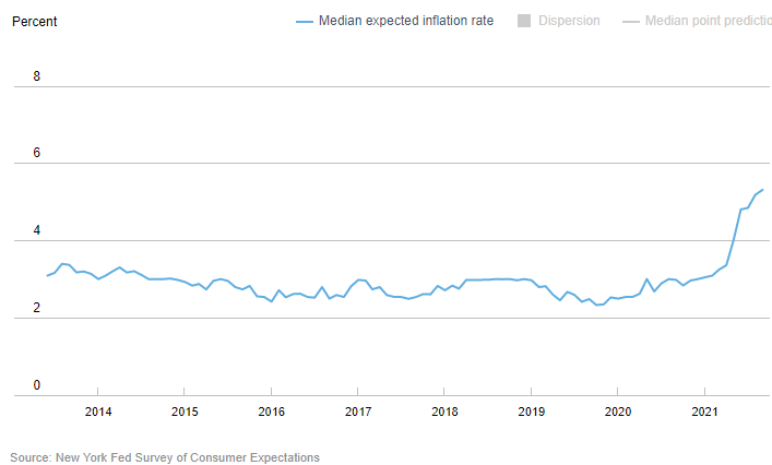 Consumers are expecting more inflation according to this survey from the New York Fed. Not surprising given what they are seeing at the gas pump, grocery store, and hardware store. Not just higher prices but empty shelves as well...