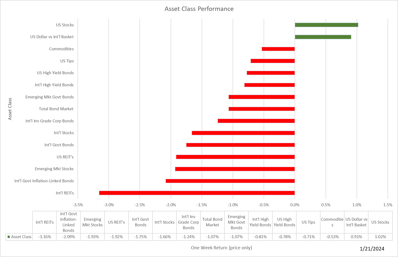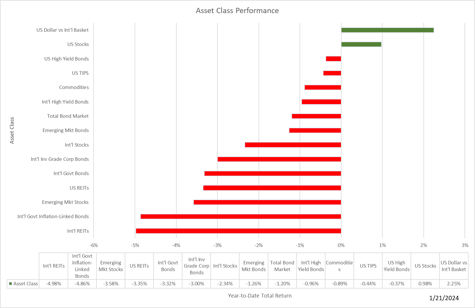 The S&P 500 may have made a new high on Friday but most asset categories remain in negative territory as we approach the end of January.