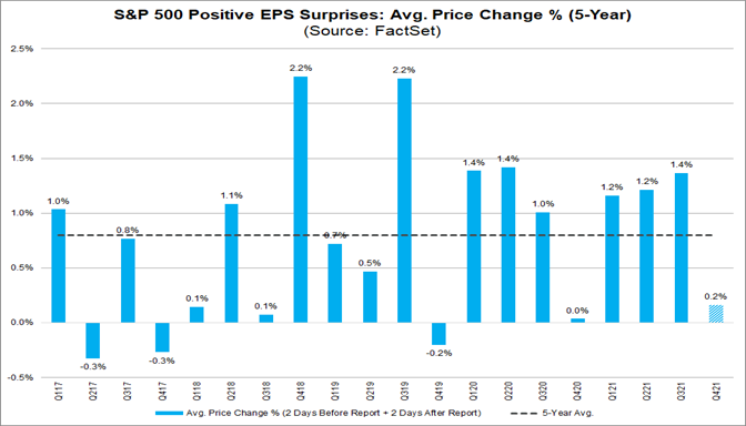 By Friday (2/18), approximately 85% of the companies in the S&P 500 had reported their results for the fourth quarter of last year. More than 75% had results that exceeded investors' forecasts and on average, those results were 8.5% higher than the forecasts. This is similar to what we've seen over the past several years. But this year, investors aren't reacting by bidding up share prices as you can see from this chart from FactSet: