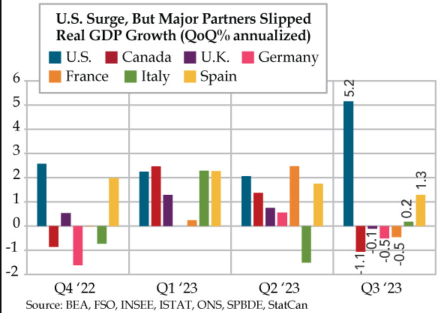 There was also a huge discrepancy between our economy and some of our major trading partners in the third quarter as Danielle DiMartino Booth points out in this chart.