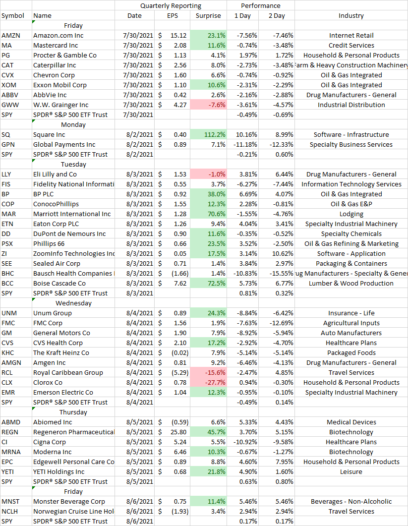 Here is the table of reports through Friday. I think we're done with earnings until October. Phew!