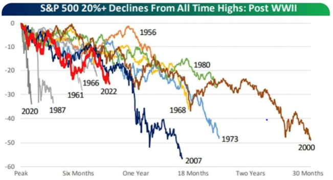 So it would be surprising to see the market reverse and begin a sustained advance at this juncture given current trends of inflation, interest rates, and the economy. Particularly when you look at prior bear markets since WW2.