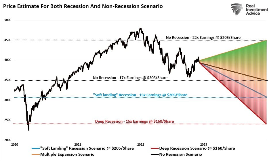 Don't like my forecast? Here is a forecast from Real Investment Advice that has four different scenarios. Their "soft landing" scenario is similar to my forecast.