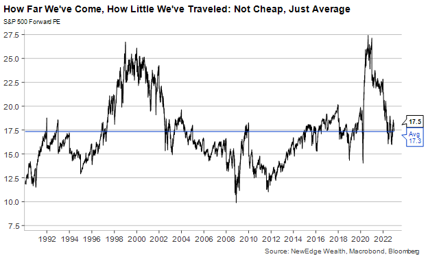 I am increasingly of the opinion that valuations (P/E for example) may stop receding if we get some moderation of inflation and the Fed slows or pauses its rate hikes. I doubt the market's P/E will fall back to 10x like it did in 2009 and 2012. My single point estimate is 15x, a bit lower than today and below its long term average. Again, I'm assuming some good news on the inflation/interest rate front. All bets are off if that good news is not forthcoming!