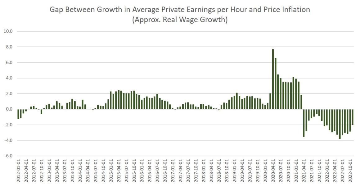 Despite rising wages, the consumer is beginning to fall behind as inflation has been more than offsetting wage gains since spring 2021.