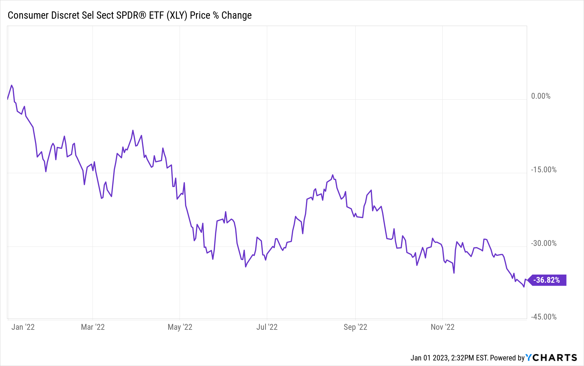 Falling real wages will result in falling demand for goods and services. Shares of consumer discretionary etf XLY (holding shares of companies like Amazon, The Home Depot, Tesla, Target, and Marriot) fell more 35% last year as investors lowered their expectations for sales and earnings growth.