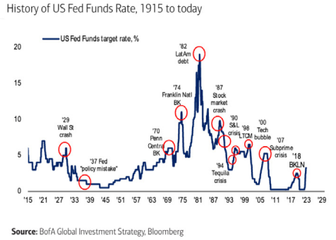 Perhaps you remember this chart from a prior Chart Attack! It highlights some of the financial accidents that have occurred after the Fed raised rates. Most occurred after a spike in rates and after those accidents, rates typically peaked.