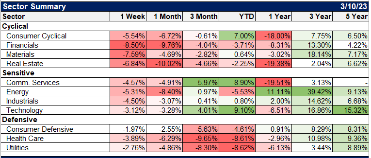 Also not surprisingly, the financial sector suffered the most last week: