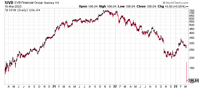 We've already seen it with the collapse of SVB's shares which had traded as high as $738(!) in January 2022 and are now essentially worthless (the last price before trading was halted, $106, is not indicative of the shares' current value).