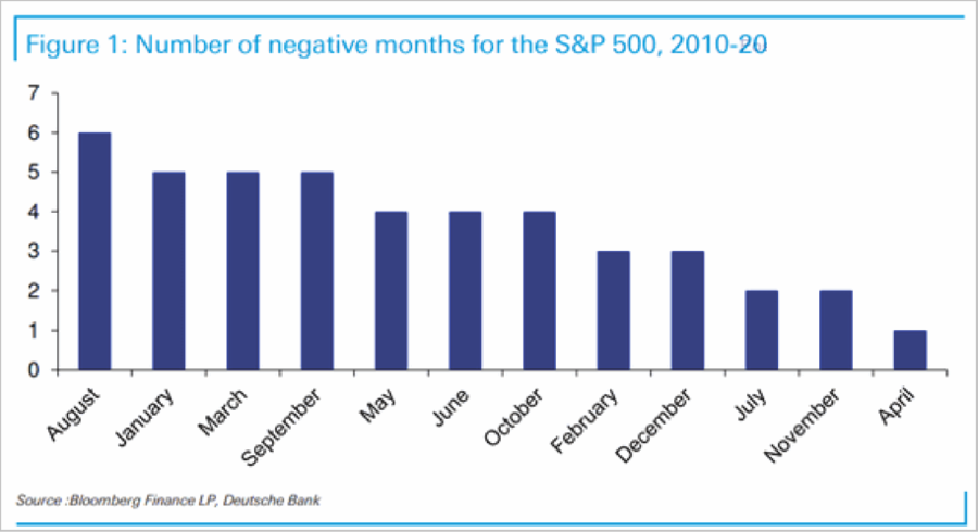 The stock market has posted positive returns for the last six months in a row. This is a very unusual event, happening just a dozen times since the 1850s! At some point, the market will pause. . . and August may be the month. According to Deutsche Bank, over the past ten years, stocks have declined in August six times, the most of any month. Will this August make it seven out of eleven? Or will the winning streak continue? (The S&P500 is up about 1.1% with ten days to go.)