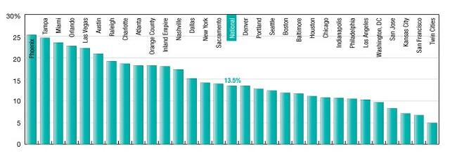 Rents on a national average basis rose 13.5% last year, well above inflation overall. In some markets (mostly warmer climates) rents were up more than 20%! The increase was also much faster than wages putting a real crimp on renters' budgets.