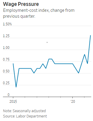 The Employment Cost Index (which measures wages and benefits) was also reported this past week, rising 1.3% for the quarter ended September 30, 2021, the highest gain in 20 years. Annualized, the Employment Cost Index is rising 5.2% and suggests further inflationary pressures ahead as employers raise prices on their goods and services to maintain profitability.