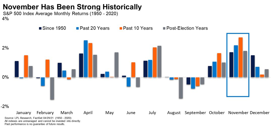The fourth quarter tends to be a good one for equity investors. And November is one of the best months as this chart illustrates.